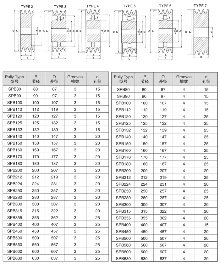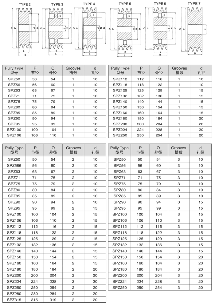 直孔V型带轮规格参照表