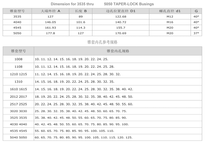 锥套尺寸规格表