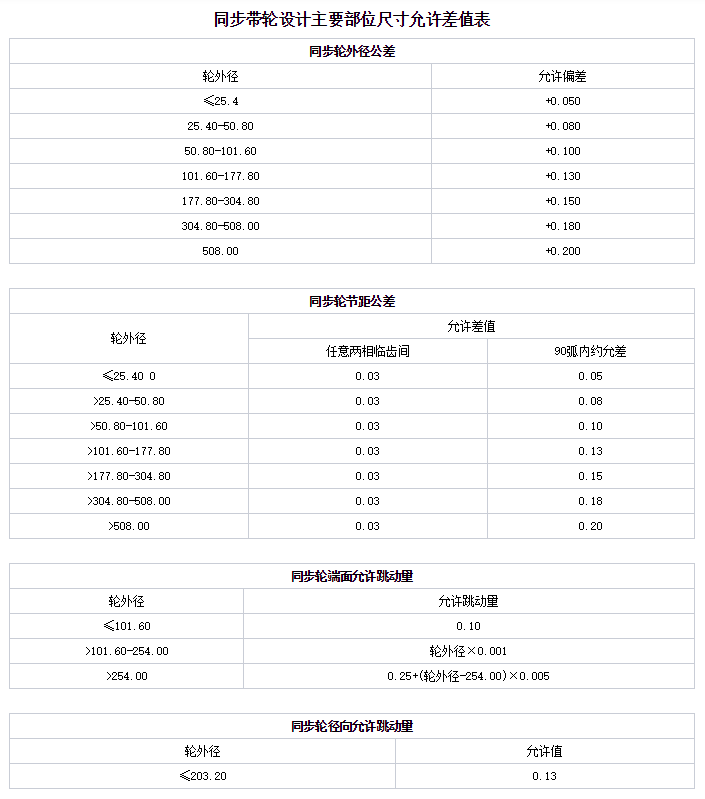 同步带轮设计主要部位尺寸允许差值表